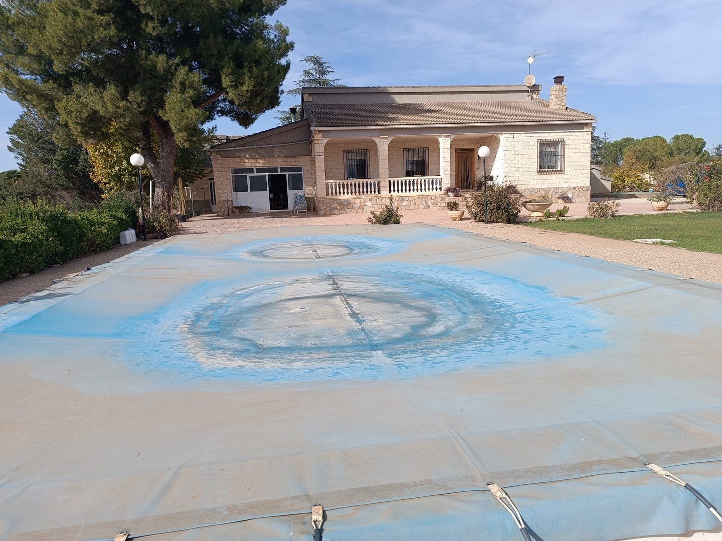 Villa for sale in YeclaSet on a 8,800 m² plot, this remarkable detached villa offers a total built area of 397 m² - 198 m² dedicated to the residence, 78 m² to the impressive pool, 71 m² to the garage, and 50 m² to the barbecue area. every corner of this property is designed for enjoyment.The stunning 125,000-liter pool, lined with mosaic tiles and equipped with a full filtration system, is the perfect centerpiece for warm summer days. Inside, the home features 3 bedrooms with built-in wardrobes, 2 bathrooms (one with a shower and the other with a bathtub), a welcoming living-dining room with a fireplace, a solid oak kitchen, pantry, all from quality materials, and heated with central oil-fired heating.The separate barbecue area, complete with kitchen units and its own fireplace, invites gatherings all year round. A 25 m² porch and a spacious garage for up to 3 vehicles further enhance the property's functionality.Located in one of Yecla's most exclusive residential areas and just 2 km from the town center, the estate offers both convenience and tranquility. The fully fenced plot features rich, fertile soil and a very nice collection of fruit trees, including peach, olive, almond, apple, pear, and grapevines. Rarely you'll find houses of this size so close to the daily amenities.The property is connected to the mains electricity, and both drinking water and irrigation water - everything you need for comfortable country living.About the area: Yecla is a charming and historic town of app. 35000 inhabitants, located in the region of Murcia. It is renowned for its award-winning wines, historical landmarks, and vibrant local culture. The surrounding natural landscapes of scenic mountains, vineyards and almond groves provide opportunities for outdoor activities, while the town itself offers all necessary services, including hospital, schools, shops, restaurants, and other services. With a friendly local community, lively markets, excellent gastronomy, and easy access to nature, Yecla is an ideal location for those seeking authentic Spanish lifestyle - just about an hour from the coast and Alicante airport.About us: We have a large portfolio of properties in the Costa Blanca and Costa Calida areas, specialising in country properties, villas, fincas, building plots and design and build options in the Alicante and Murcia regions with a particular emphasis on Yecla, Novelda, Elda, Monovar, Pinoso, Sax, Villena, Aspe, Fortuna, Jumilla, Abanilla, and many more surrounding areas. We have been established since 2004 and have decades of experience between the team which we bring to bear to help you find and secure your new dream home. We help you every step of the way to make sure your purchase in Spain is safe and hassle free. We are not here to sell you a property, we are here to help you realise your dream and find what is right for you. With us you are in the safest hands. Contact us now to have a no obligation chat about how you too can realise your dreams.