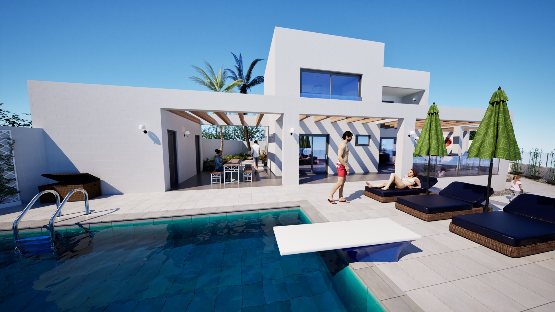 This contemporary villa in Torreblanca del Sol blends modern Mediterranean architecture with panoramic sea and mountain views, offering a serene and elevated setting just minutes from the coast. Designed with an open-plan concept, the main living space features floor-to-ceiling windows that fill the home with natural light and create a seamless connection between the interior and the generous outdoor areas. With approximately 290 m² of built space on a plot of around 500 m², the villa provides spacious proportions, a private 32.5 m² swimming pool, and more than 290 m² of terraces and solarium for year-round enjoyment. The layout is flexible and can be adapted to include up to five bedrooms, allowing future owners to personalise both the distribution and finishes. The property includes an underground garage for two vehicles, generous storage and utility areas, and a modern kitchen equipped with high-quality materials and appliances. Premium construction features—such as efficient insulation, double-glazed windows with thermal break, aerothermal climate control and elegant exterior details—ensure comfort, efficiency and a refined aesthetic. Its location is one of its greatest advantages: a two-minute walk from Torreblanca train station with a direct connection to Málaga Airport, only four minutes from the beach, and close to schools, supermarkets and all essential amenities. Despite this excellent accessibility, the villa remains tucked within a peaceful residential area offering privacy, greenery and open views of the coastline. The project holds a fully approved building licence, so construction can begin immediately. Buyers also have the opportunity to customise the home before building starts, making this a rare chance to create a tailor-made contemporary villa in one of the Costa del Sol’s most well-connected and desirable locations.