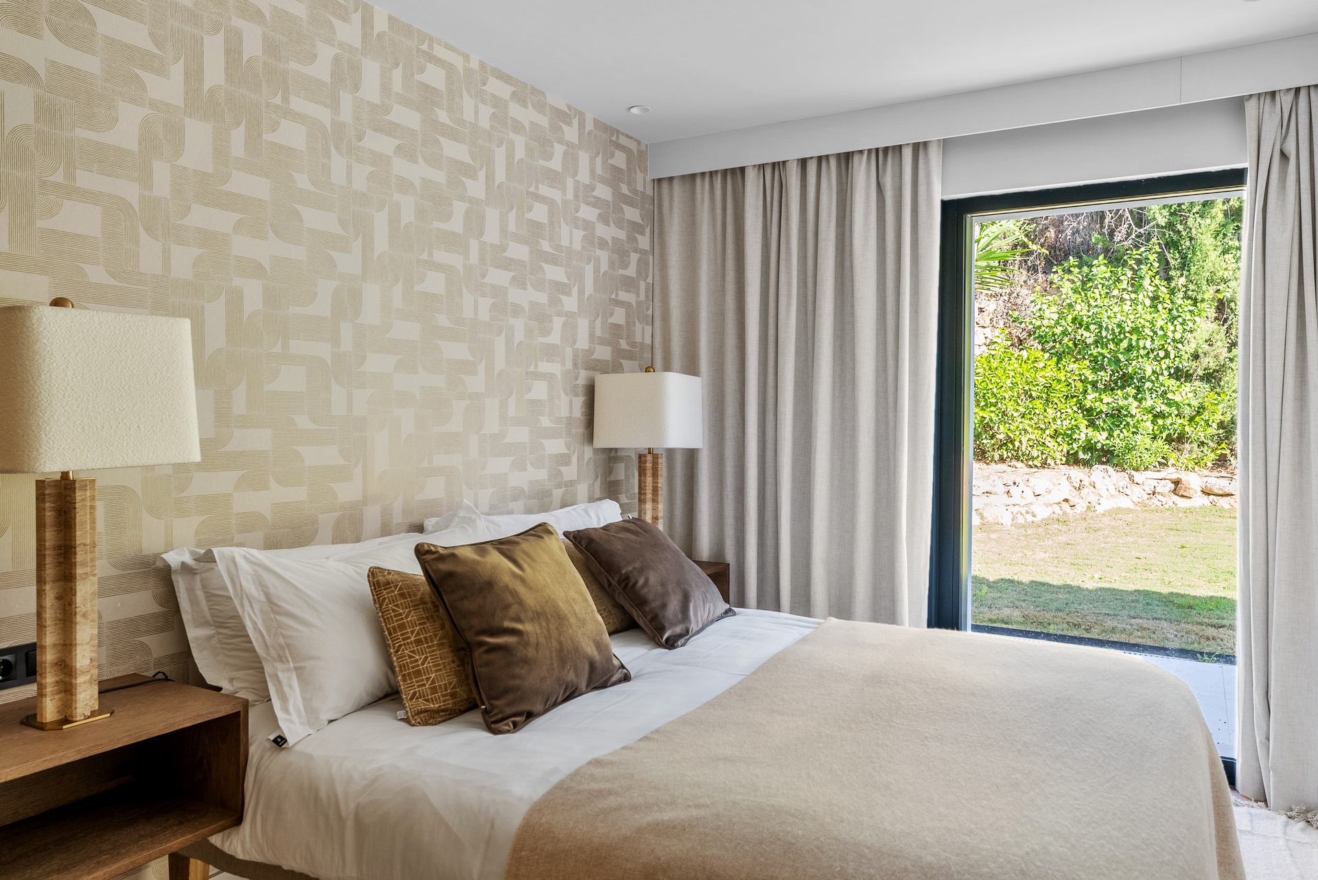 La planta principal dispone de dos dormitorios dobles, un dormitorio individual y baños modernos con suelo radiante. En la planta superior, la suite principal ofrece un refugio privado con vestidor, un lujoso baño en suite, terraza privada y acceso directo a una azotea panorámica con vistas abiertas.